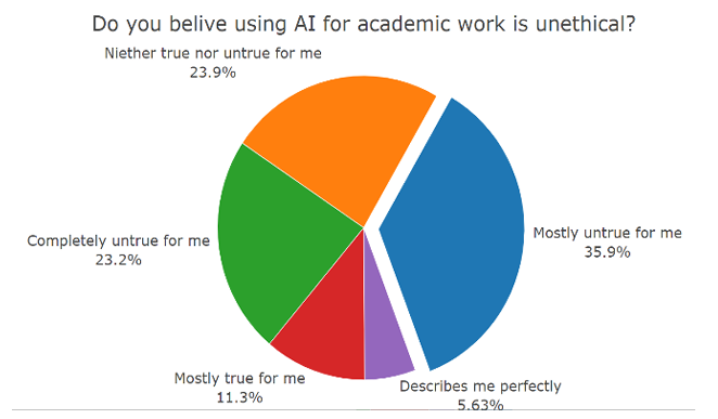 More than half of respondents see nothing unethical about using AI for academic work—a sign that moral resistance is fading quickly.